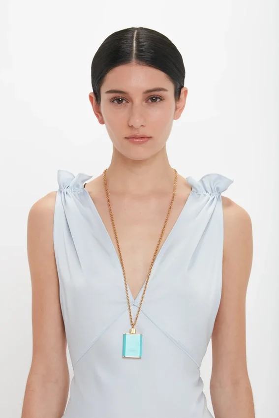 diseñado para contener con cuidado la fragancia emblemática Portofino de la casa, este colgante único está exquisitamente elaborado en Italia en latón dorado cepillado. Cuenta con un bonito acabado con un cierre de langosta y el logotipo de Victoria Beckham en la parte inferior del colgante.
