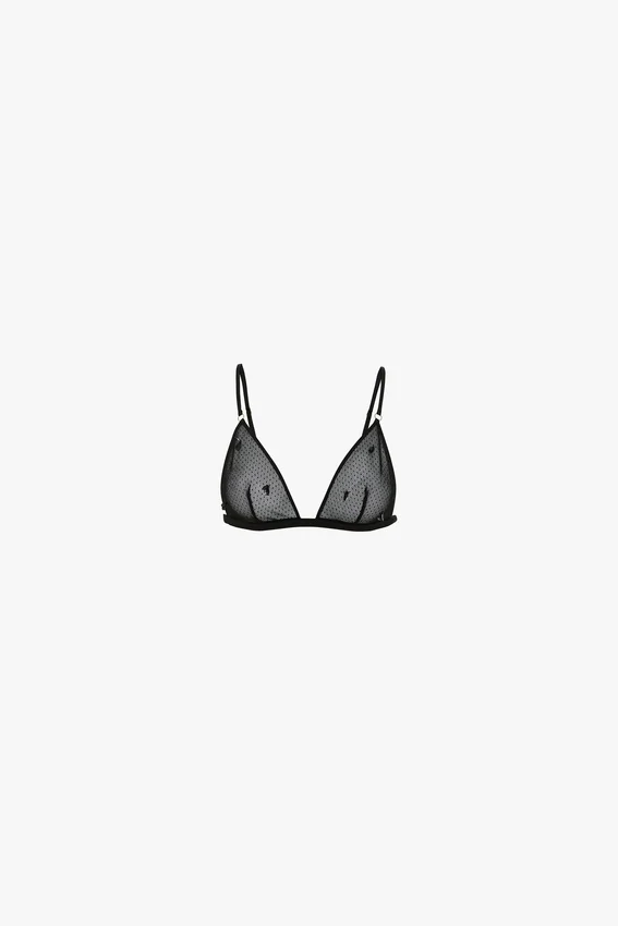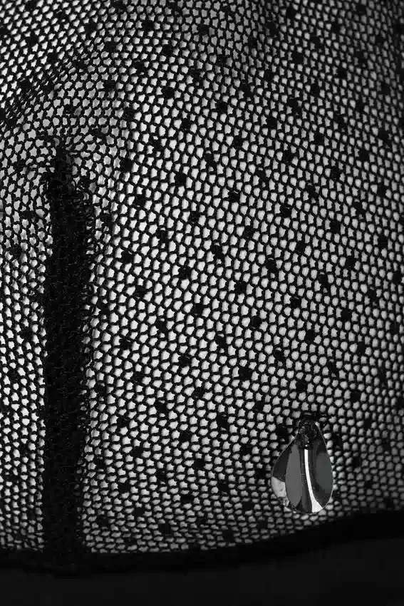 confeccionado en delicado encaje transparente con apliques de lentejuelas, el sujetador de malla con detalle de lentejuelas es una prenda interior que ofrece sujeción y sensualidad. Con tirantes ajustables y una espalda elástica, ofrece comodidad e inspira confianza.